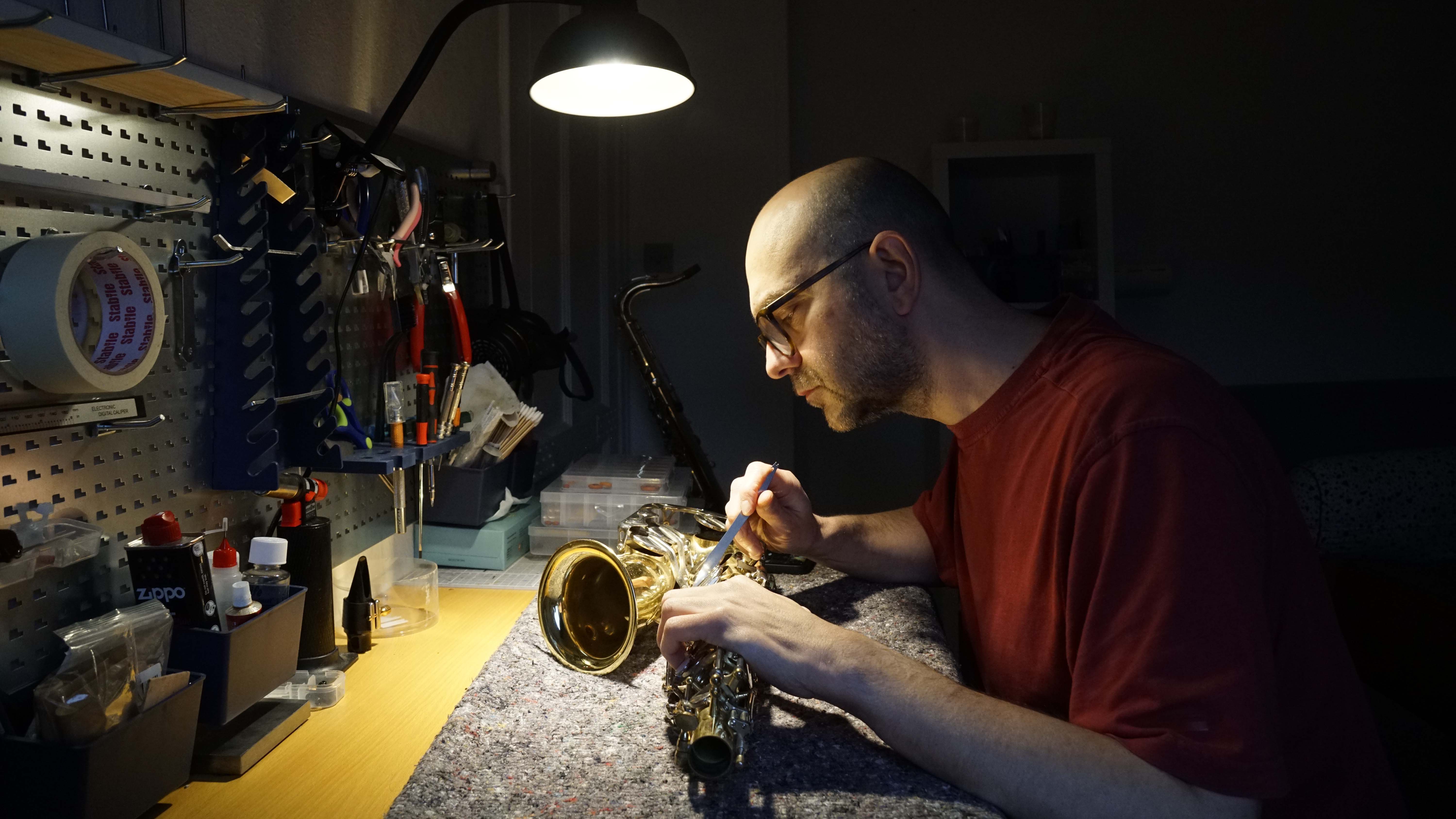 Det startede som en hobby for et par år siden, hvor jeg købte gamle, slidte horn, satte dem i stand og solgte dem videre. Efterhånden begyndte jeg at reparere andre musikeres – ofte bedre – saxofoner.