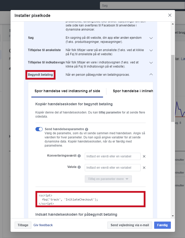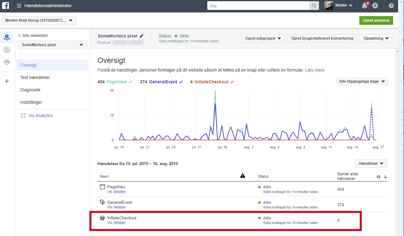 - I FB-BM -> hændelsesadministrator – > (relevante pixel) burde du kunne se at din nye event er registreret. Du kan også tjekke vha. chorme-plugin’et Pixelhelper.