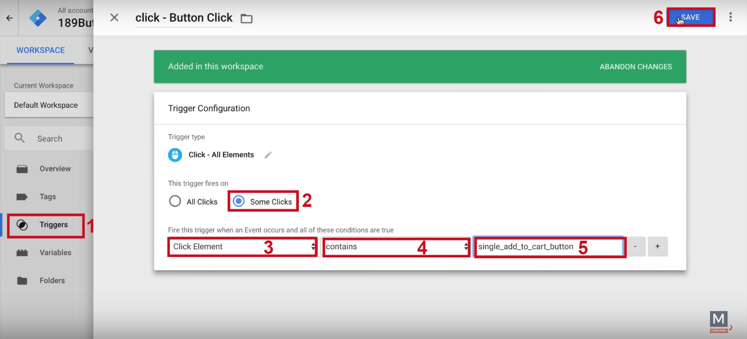 - Gå tilbage til Tagmanager ”Triggers” – op klik på den knap som du oprettede.