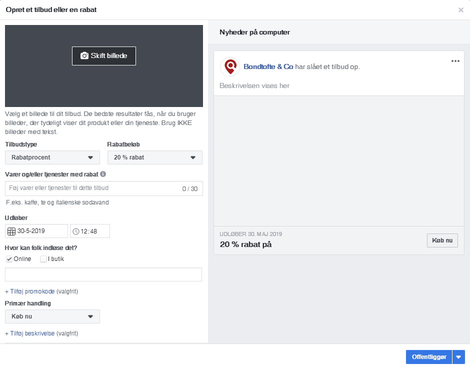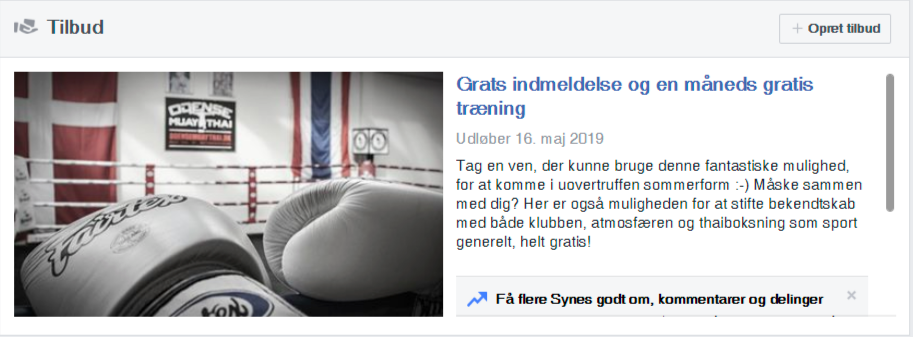 Husk at i modsætning til annoncering, så står dine tilbud ISTEDET for din almindelige opslag, dvs., at dine følgere o.a. muligvis ser tilbuddet i stedet for noget du netop har poster, og det er ikke altid hensigtsmæssigt. Lad derfor være med at oprette for mange tilbud, nøjes evt. kun med ét ad gangen.