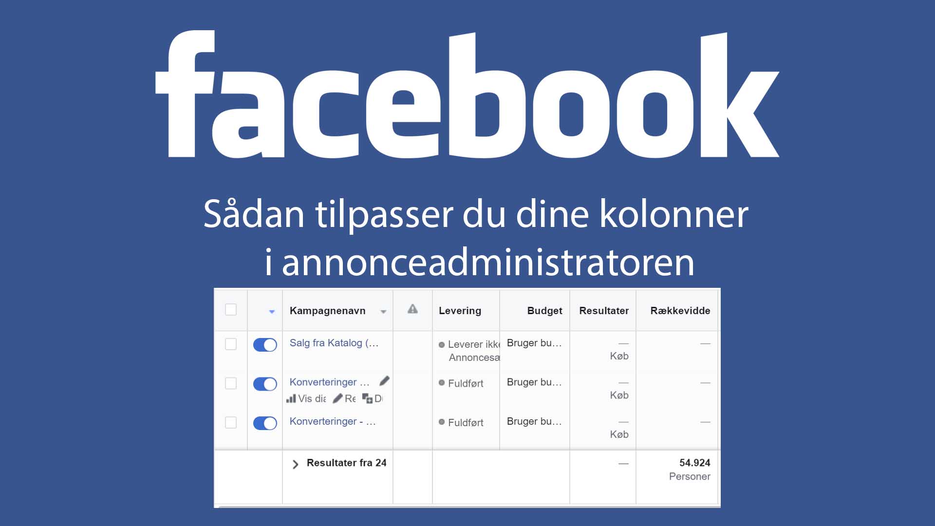 Hvis du tilpasser dine kolonnerne i Facebook Business Managers annonceadministrator, så kan du få vist specifikke data og se om dine kampagner når netop de mål som er vigtige for dig.